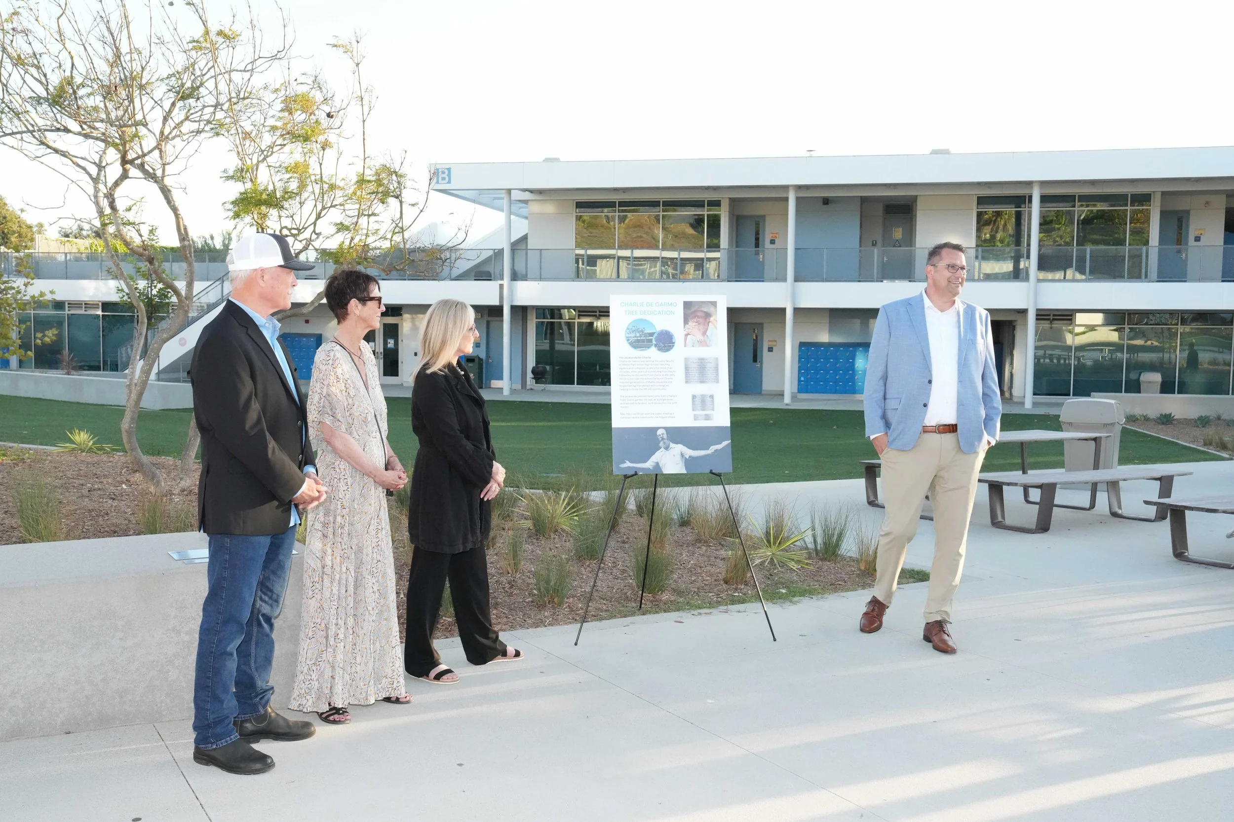 The Charlie de Garmo Jacaranda Tree: Planted by Charlie at his Pt. Dume home and now located in the heart of the Malibu Middle School quad to honor a math teacher who inspired generations of students at Malibu Park Junior High from 1964-1985.
